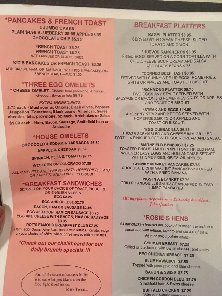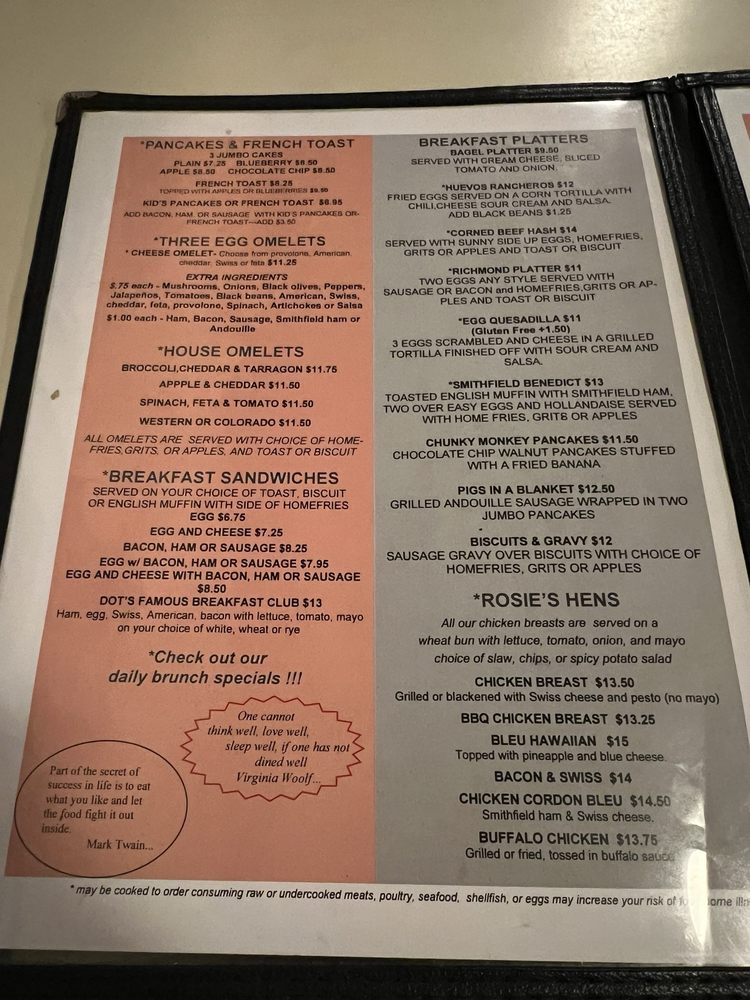 Located in Richmond, VA, Dots Back Inn is a charming American diner that captures the essence of classic comfort food. With a menu brimming with hearty options, guests can savor everything from the solid Tuna Melt to the classic BLT, and Veggie Sub featuring grilled vegetables. Whether you’re in the mood for a burger or an all-day breakfast, Dots has something for everyone, including delightful vegan and vegetarian choices.